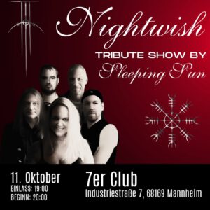 Die deutsche Tribute-Band Sleeping Sun – A Tribute To Nightwish bietet eine einzigartige Hommage an eine der einflussreichsten Symphonic-Metal-Bands unserer Zeit. Mit ihrer energiegeladenen Live-Performance und ihrer Liebe zum Detail transportieren sie das einzigartige Feeling von Nightwish auf die Bühne.